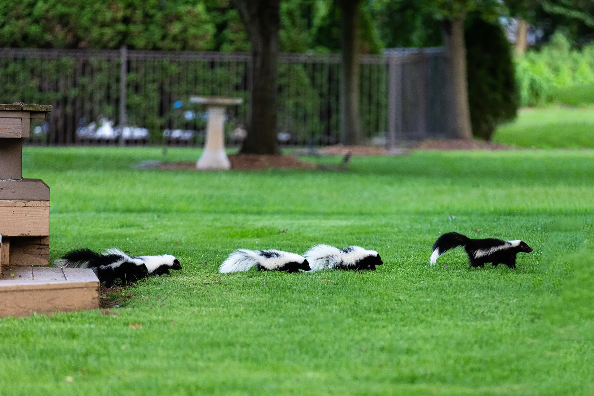 Immune to snake venom, rattlesnakes are another source of food for skunks. Skunks are one of the only animals who have this immunity and are unaffected by doses of venom 100 times higher than those that could kill a household pet. During warmer months, seeing a skunk in your yard or near your home means rattlesnakes will stay away.